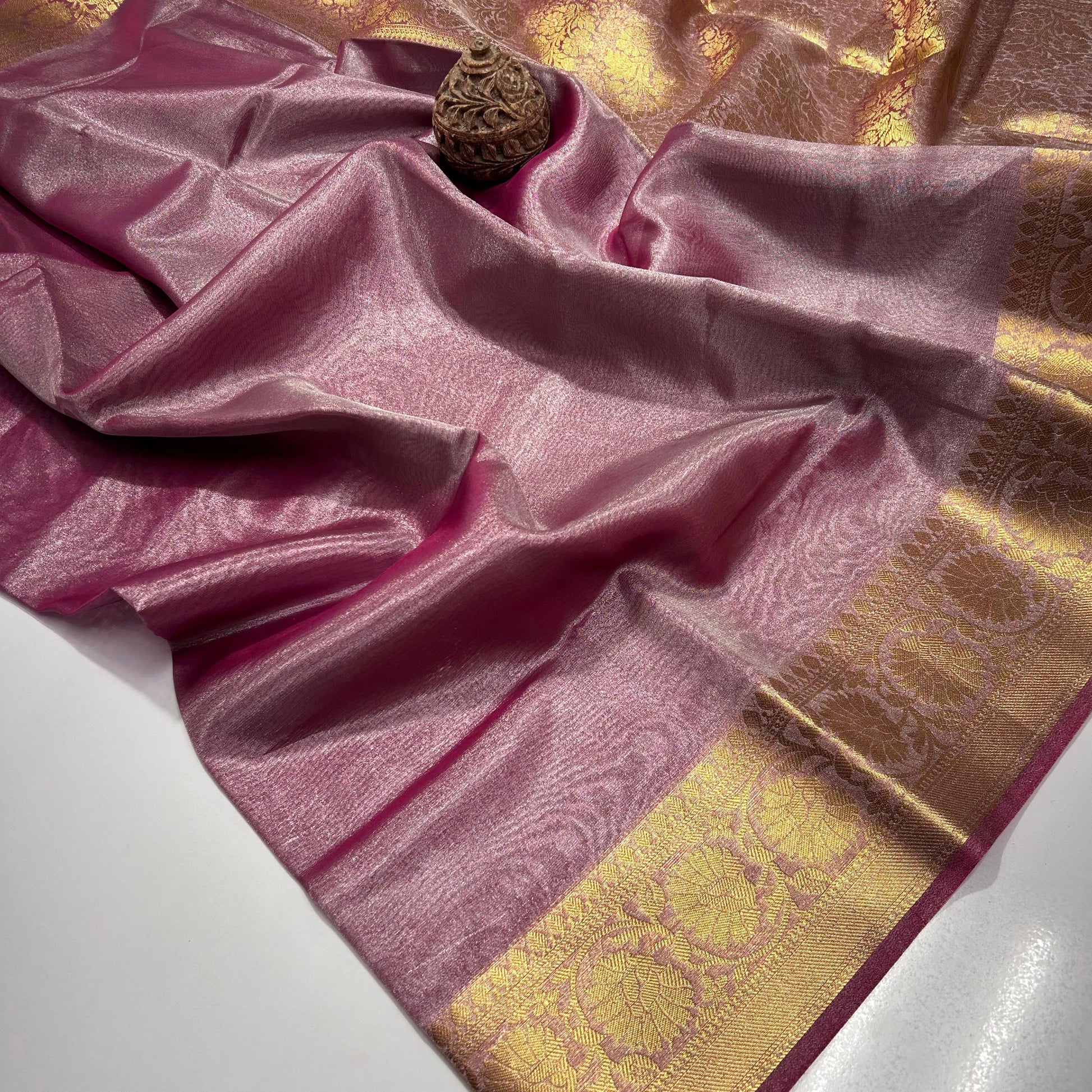 Our exquisite Banarasi Tissue Dyeable Silk Saree, a masterpiece that seamlessly blends traditional artistry with contemporary elegance. Crafted with precision and care, this saree is a celebration of the rich Banarasi weaving heritage, known for its opulence and timeless allure.